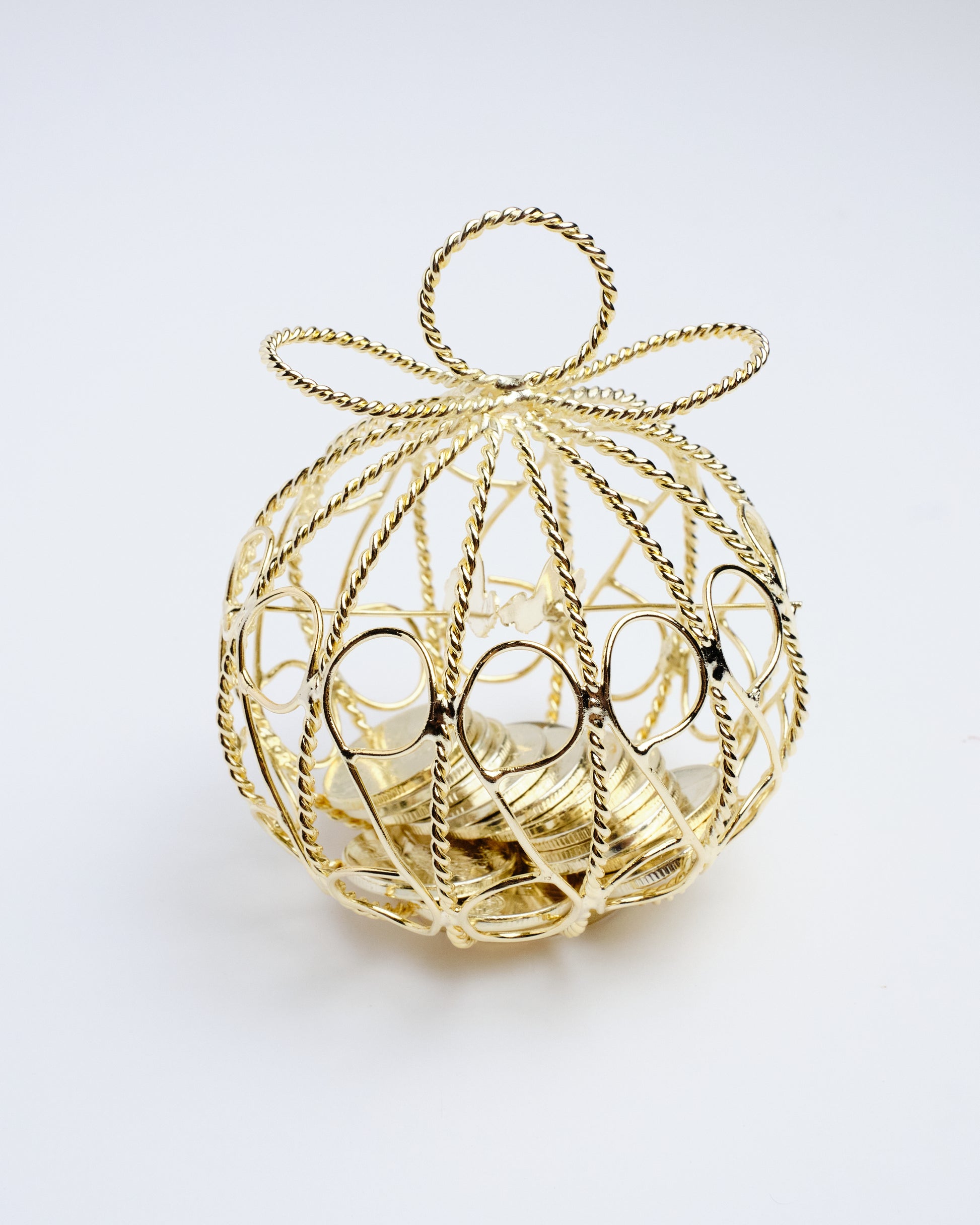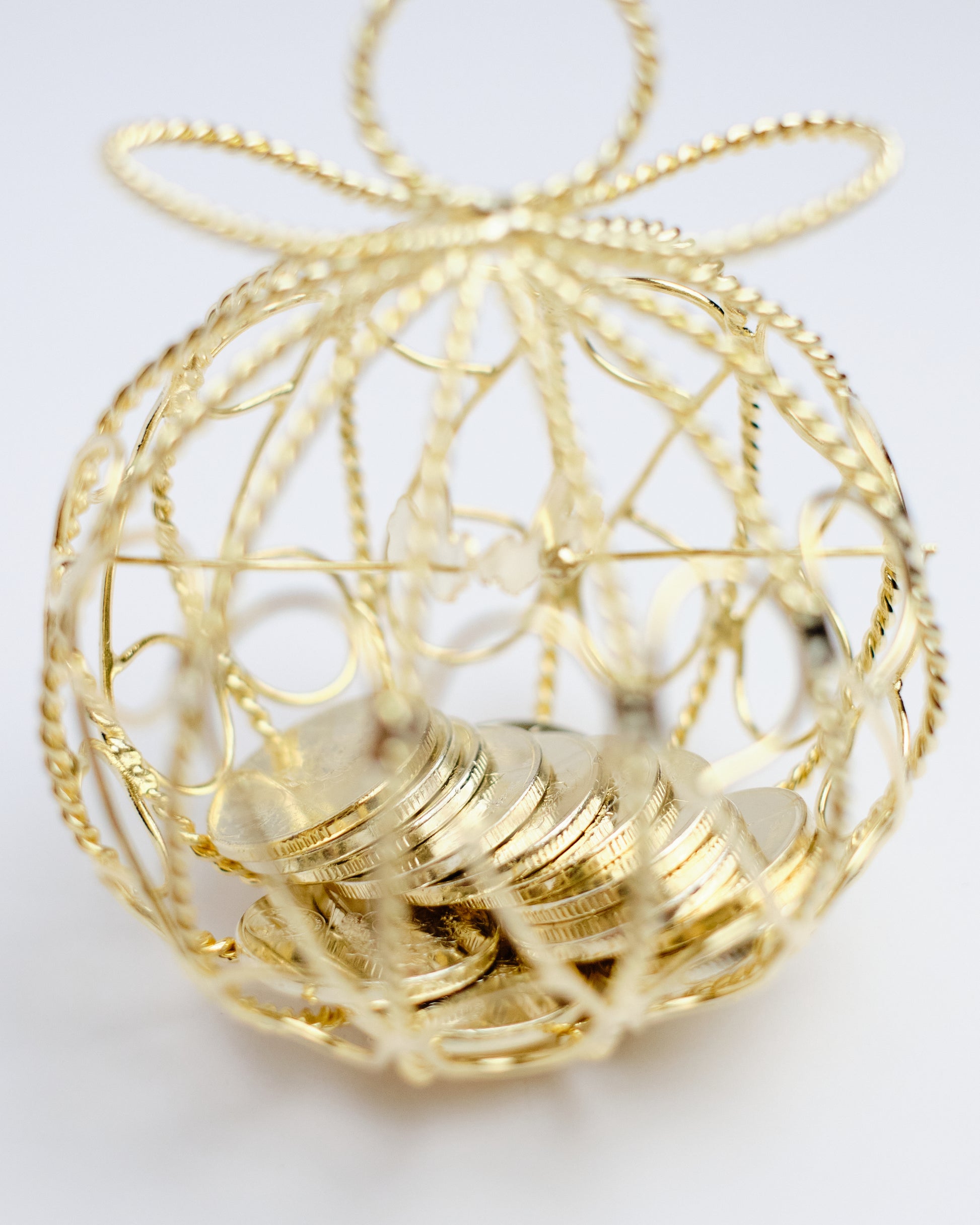 Celebrate Filipino wedding customs with this elegant Arrhae Round Gold, symbolizing prosperity, commitment, and shared wealth in marriage. This set features 13 silver-toned coins beautifully displayed in a round, cage-style holder—perfect for the traditional arrhae ceremony to bless your union.