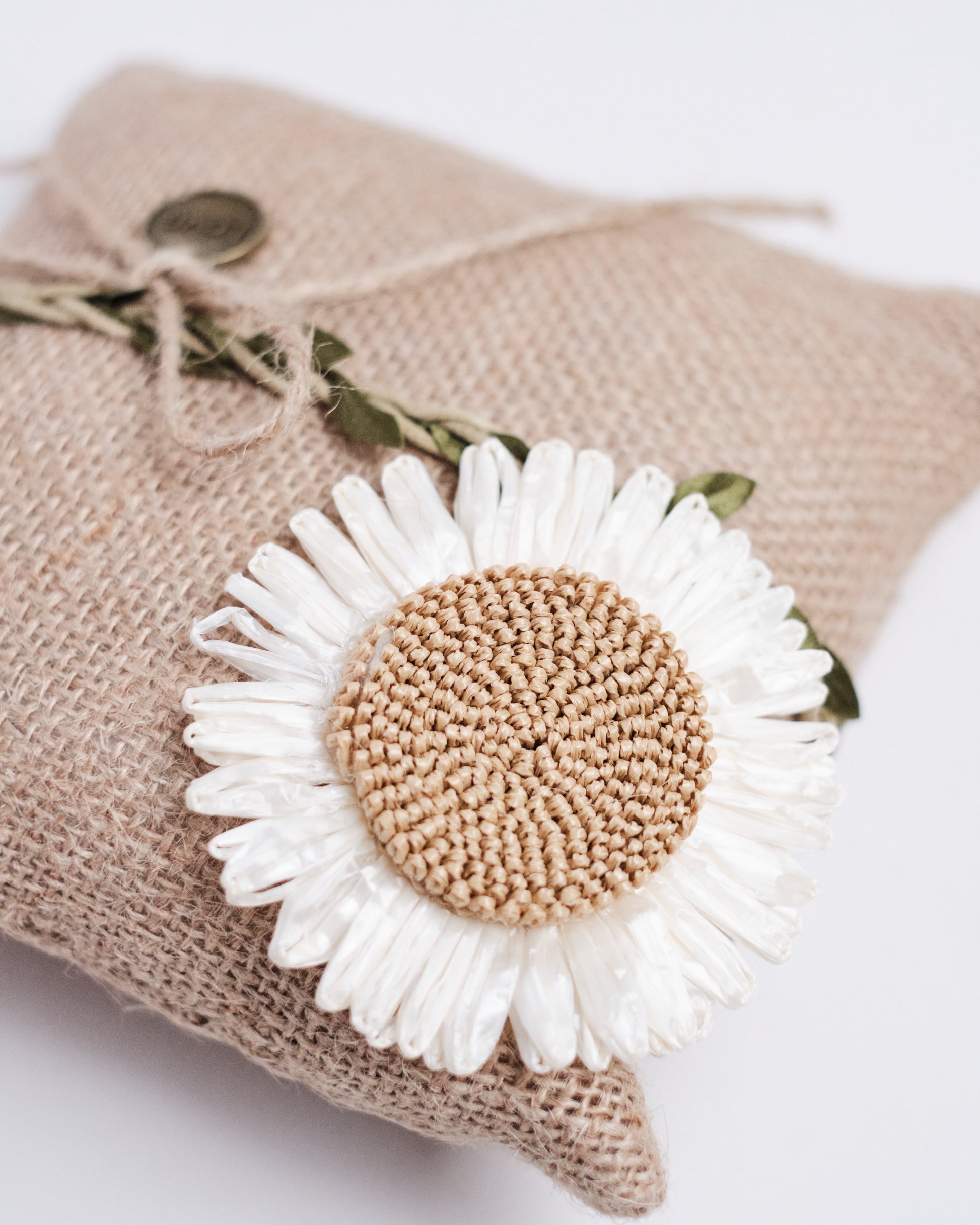 This Rustic Sunflower Ring Pillow features a cheerful sunflower centerpiece 🌻 and burlap-inspired accents — perfect for rustic, country, or garden-themed weddings. Designed to hold your wedding rings securely, it adds a warm, natural charm to your ceremony. Lightweight and easy to carry, it’s ideal for your little ring bearer 👦👧.